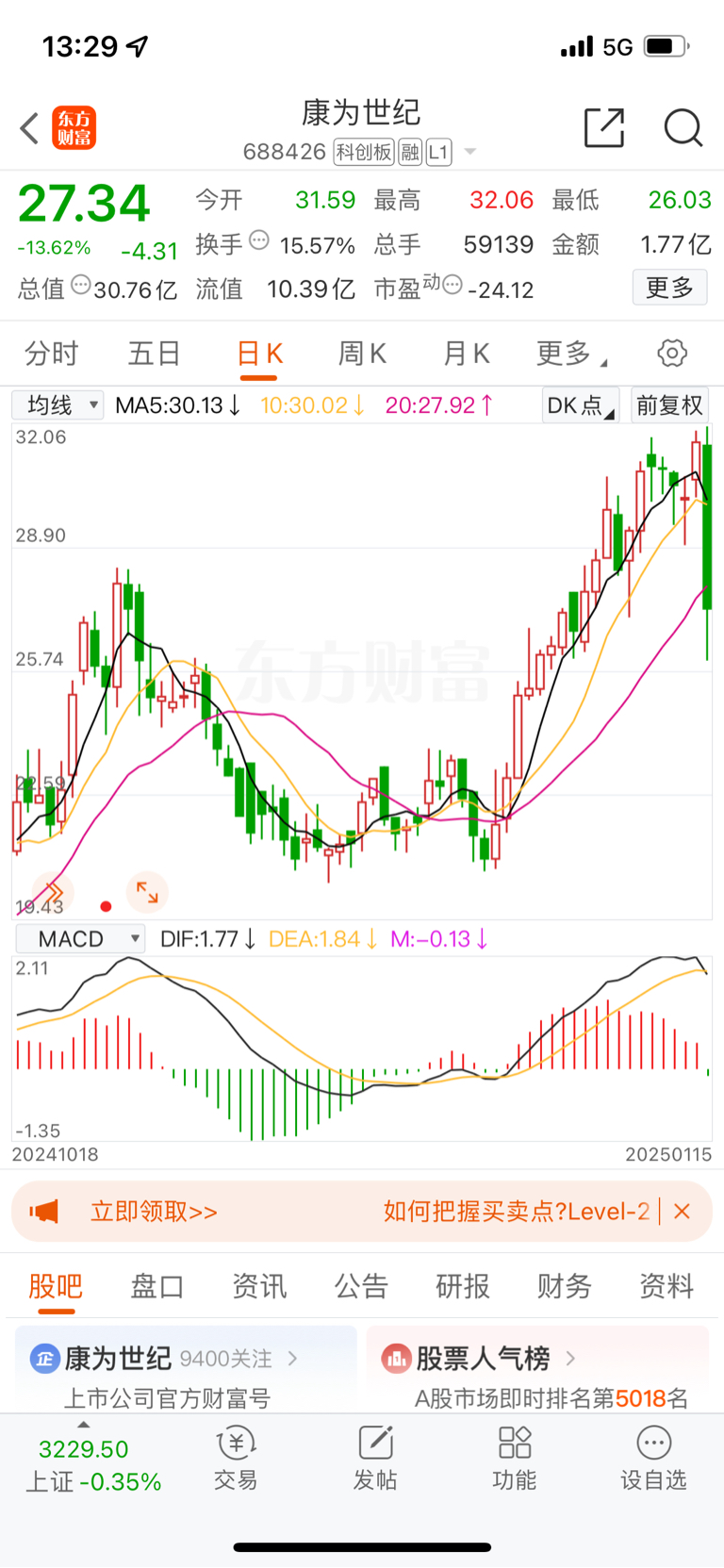 $康为世纪(SH688426)$ 巨量下跌,游戏结束。250(25.00元)等待止跌企稳。