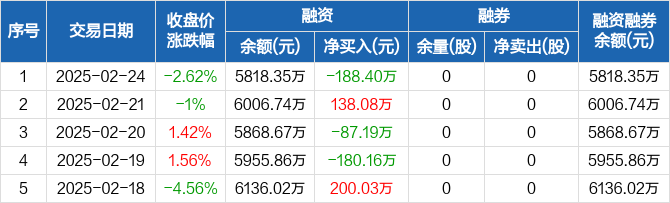 康为世纪:融资净偿还188.4万元,融资余额5818.35万元(02-24)