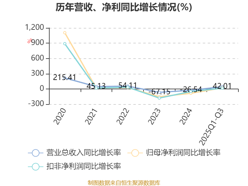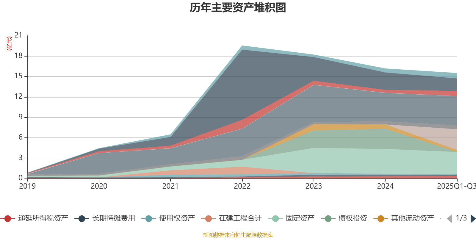 资产重大变化方面,截至2025年三季度末,公司一年内到期的非流动资产占公司总资产的19.58%,上年末为0;债权投资较上年末减少100%,占公司总资产比重下降18.34个百分点;货币资金较上年末减少27.89%,占公司总资产比重下降3.91个百分点;应收票据及应收账款较上年末增加74.15%,占公司总资产比重上升2.19个百分点。