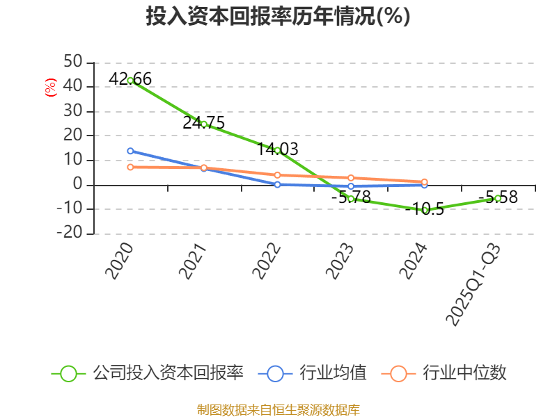 盈利能力方面, 2025年前三季度公司加权平均净资产收益率为-5.35%,同比上升0.62个百分点。公司2025年前三季度投入资本回报率为-5.58%,较上年同期上升1.08个百分点。