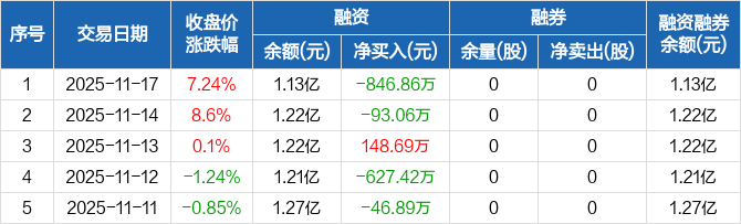 康为世纪:融资净偿还846.86万元,融资余额1.13亿元(11-17)