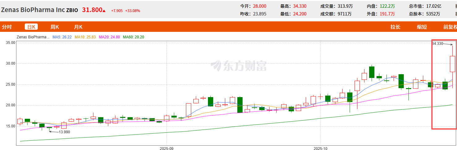 Obexelimab治疗RMS的二期数据相当不错,直接推升了股价,Zenas昨晚股价暴涨33%。诺诚健华持有Zenas的500万股已经到账,按照这个价格计算就值将近1.6亿美刀了