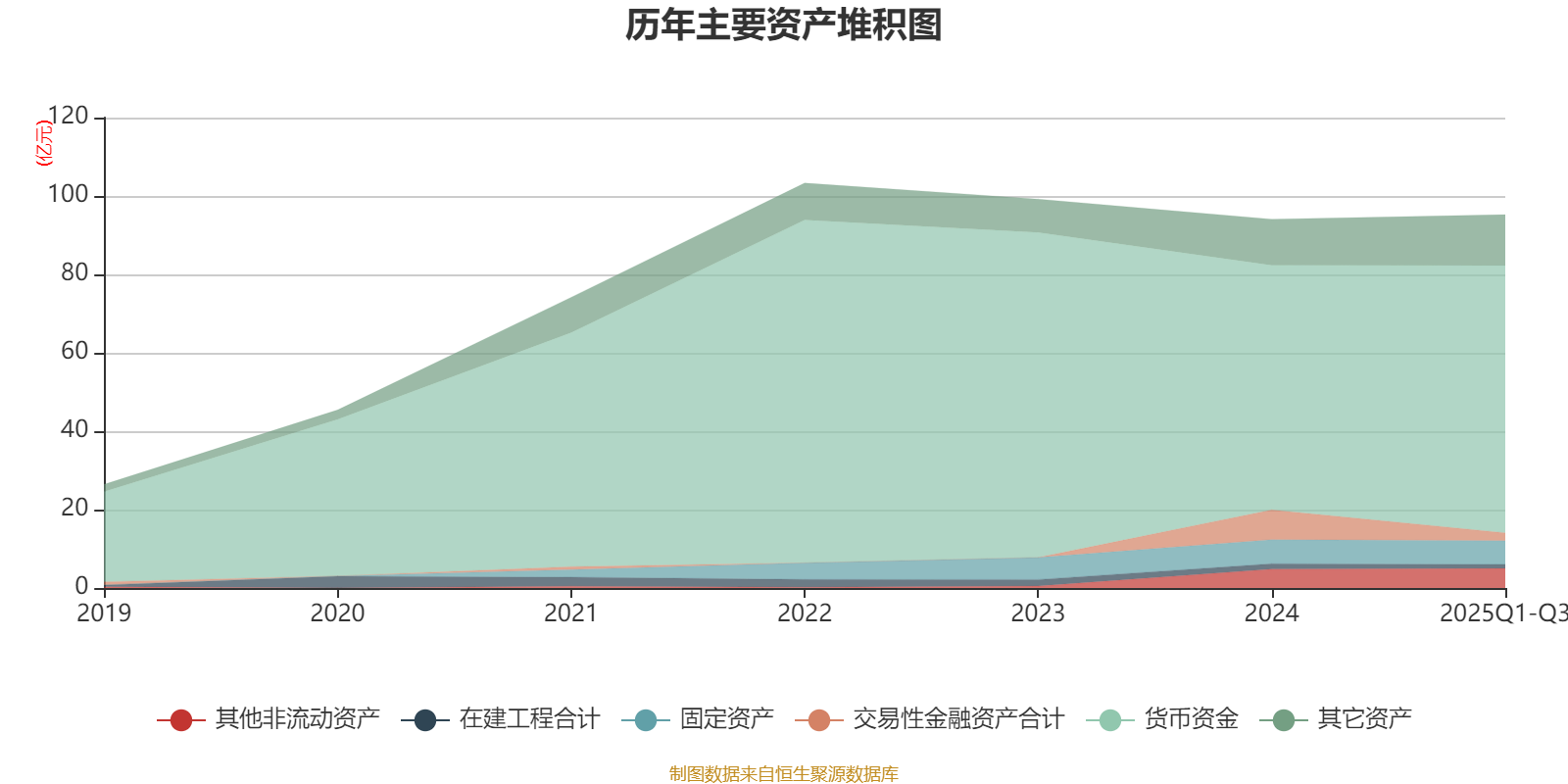 资产重大变化方面,截至2025年三季度末,公司交易性金融资产合计较上年末减少73.63%,占公司总资产比重下降5.97个百分点;货币资金较上年末增加9.28%,占公司总资产比重上升5.27个百分点;其他流动资产较上年末减少48.27%,占公司总资产比重下降1.63个百分点;一年内到期的非流动资产占公司总资产的1.13%,上年末为0。