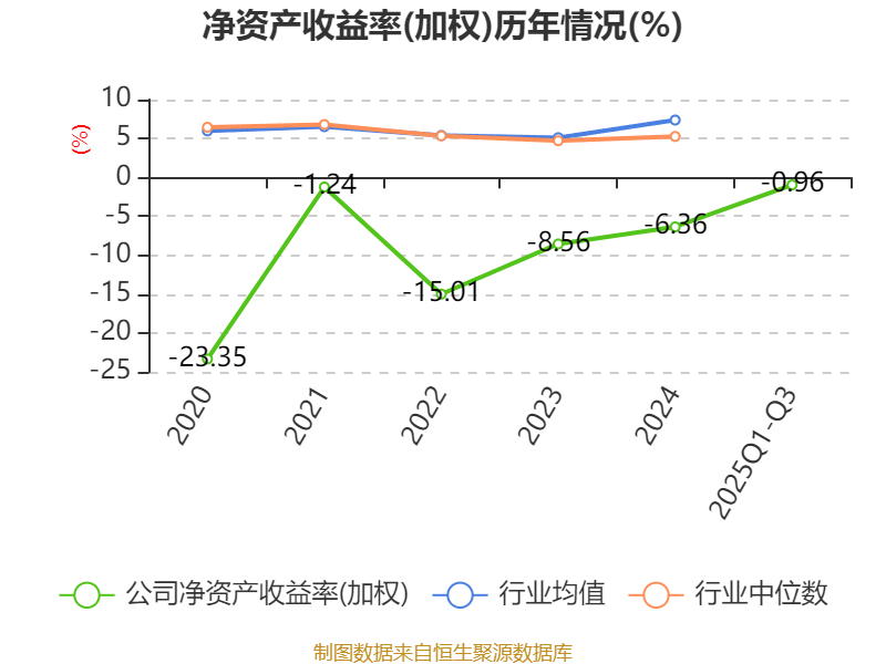 盈利能力方面, 2025年前三季度公司加权平均净资产收益率为-0.96%,同比上升2.99个百分点。公司2025年前三季度投入资本回报率为-1.41%,较上年同期上升3.84个百分点。