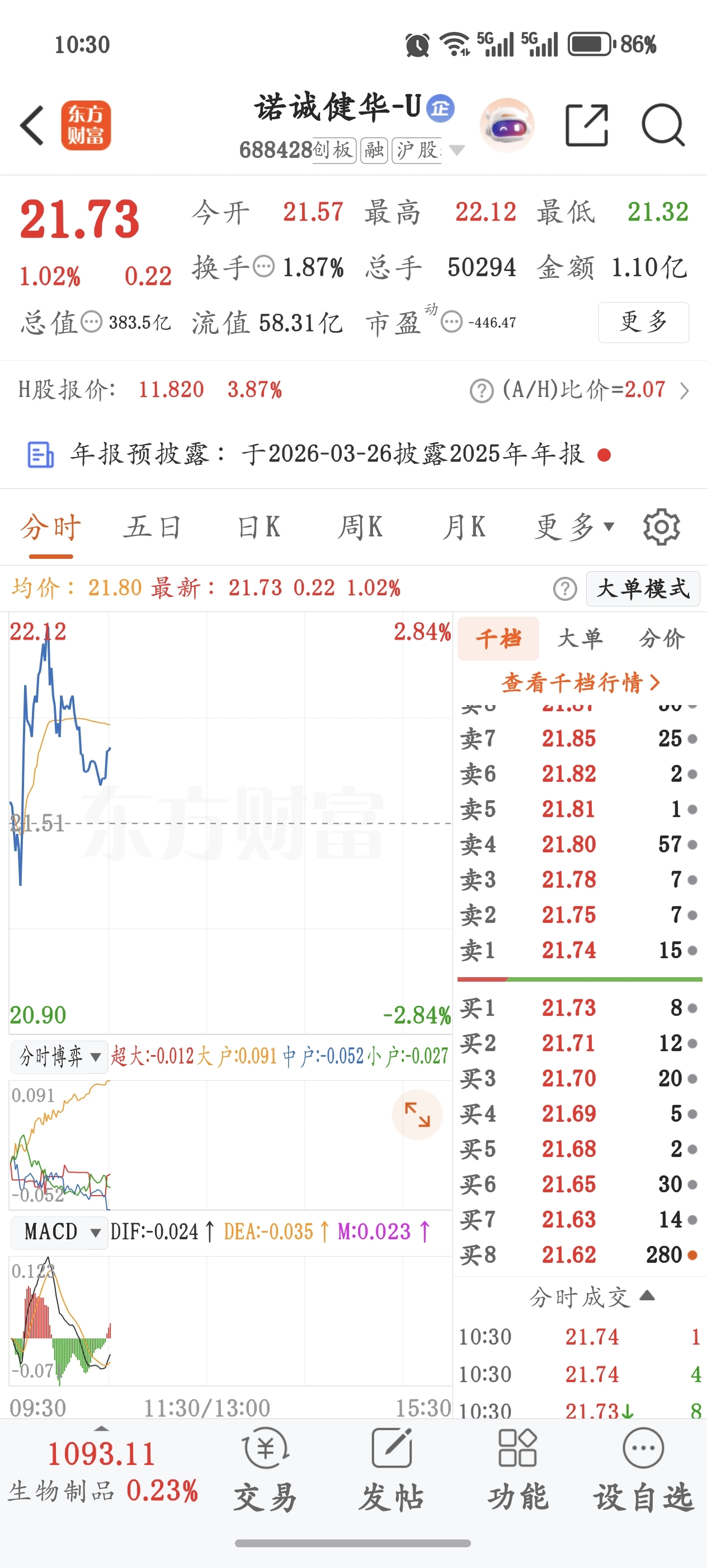$诺诚健华-U(SH688428)$ 大户在进,起飞迟早的事,耐心等待