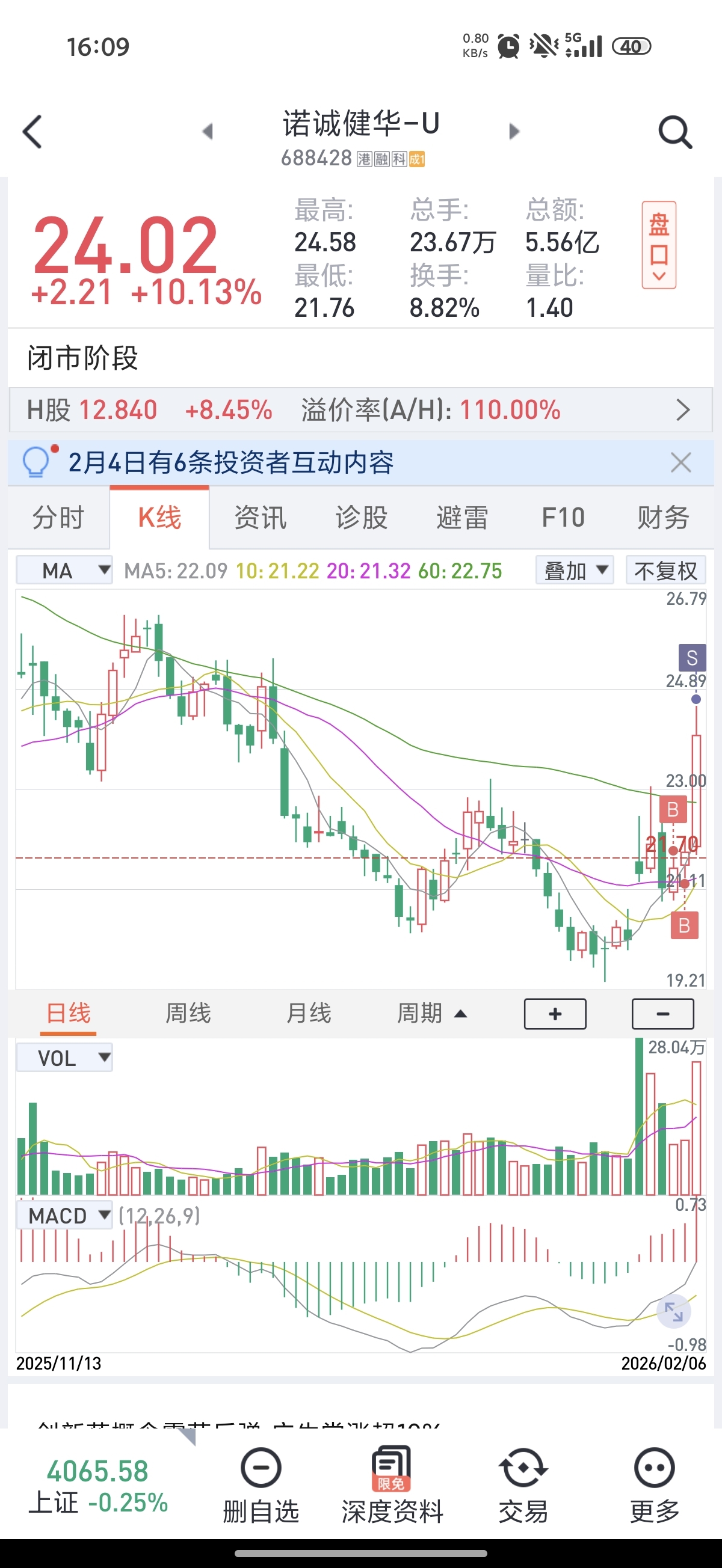$诺诚健华-U(SH688428)$ 短线突击了一下,今天卖了