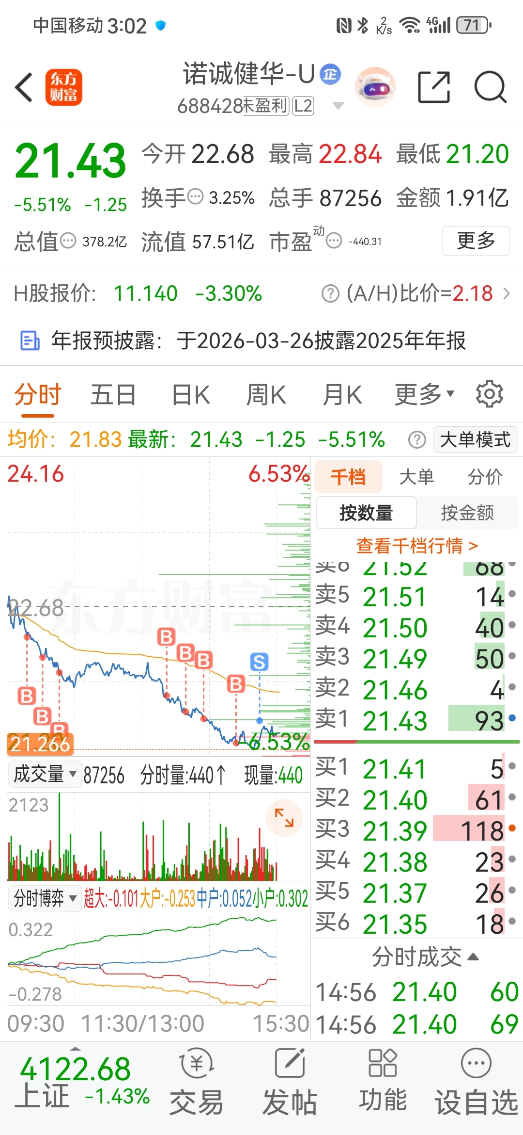 $诺诚健华-U(SH688428)$ 今天持续买入,中间做了个小T。明天如下跌将继续加仓。