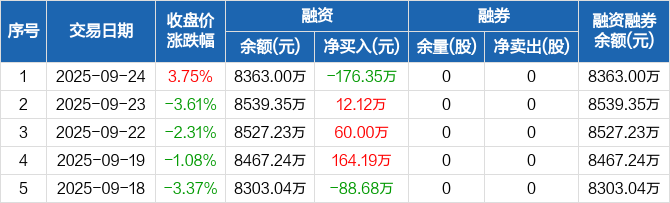 时创能源:融资净偿还176.35万元,融资余额8363万元(09-24)