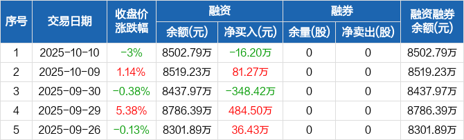 时创能源:融资净偿还16.2万元,融资余额8502.79万元(10-10)