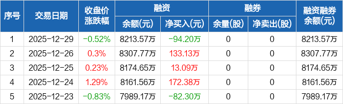 时创能源:融资净偿还94.2万元,融资余额8213.57万元(12-29)