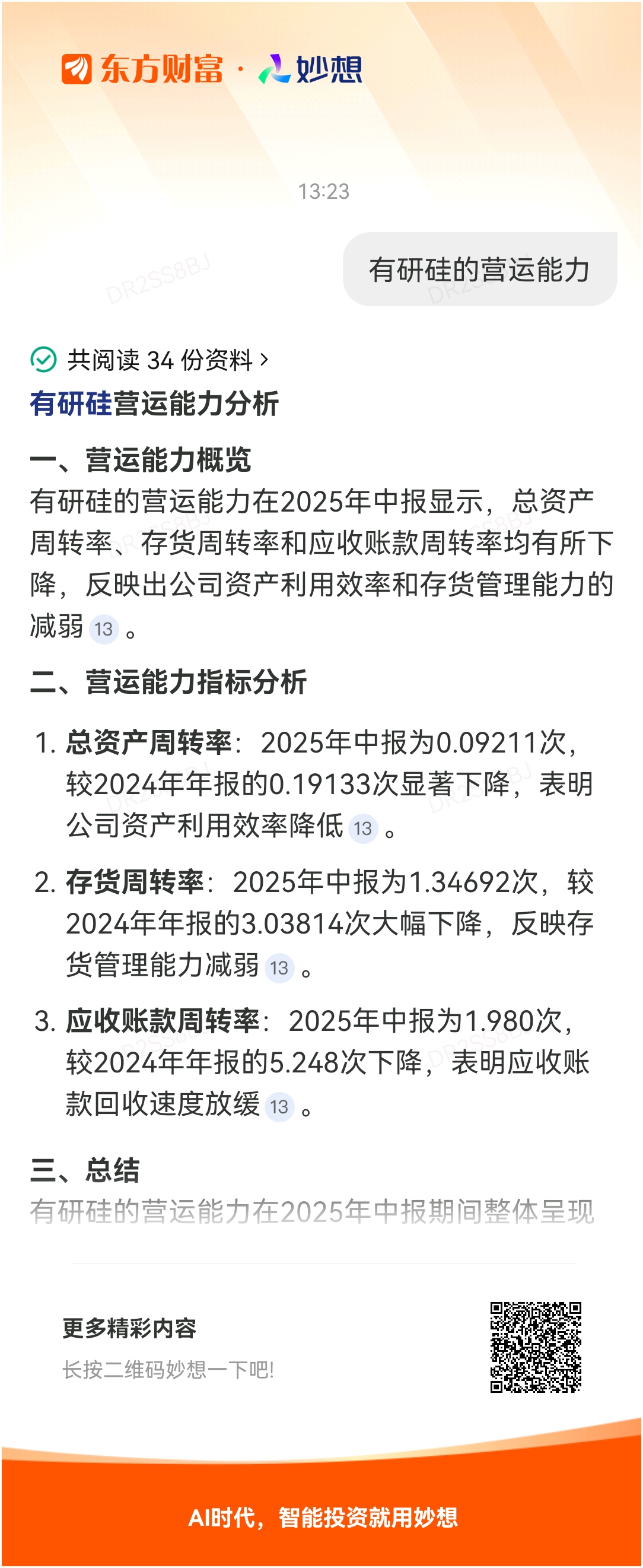 #@妙想,你怎么看?# 妙想一下:有研硅的营运能力