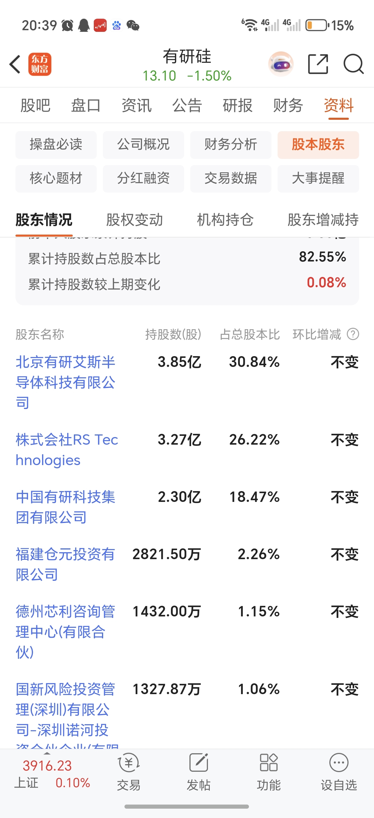 $有研硅(SH688432)$ 有研硅不用担心解禁,前三大股东不可能减持股票的,他们持有接近10亿股,