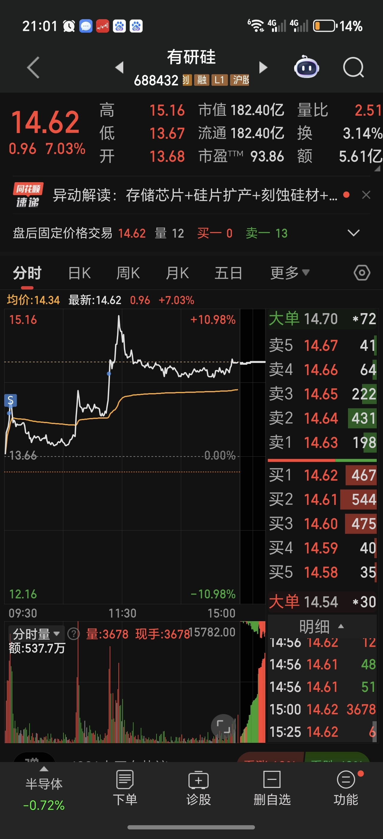 $有研硅(SH688432)$ 唉!踢飞了2万股