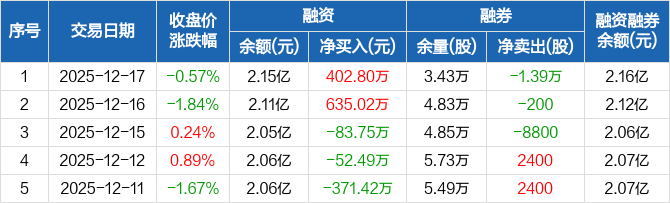 有研硅:融资净买入402.8万元,融资余额2.15亿元(12-17)