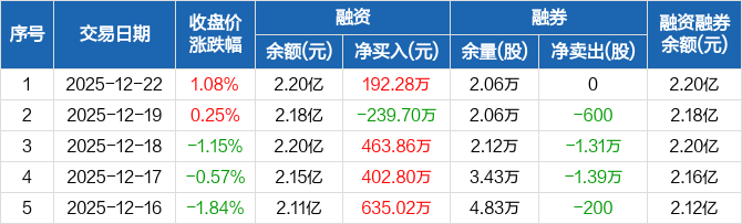 有研硅:融资净买入192.28万元,融资余额2.2亿元(12-22)