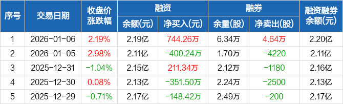 有研硅:融资净买入744.26万元,融资余额2.19亿元(01-06)