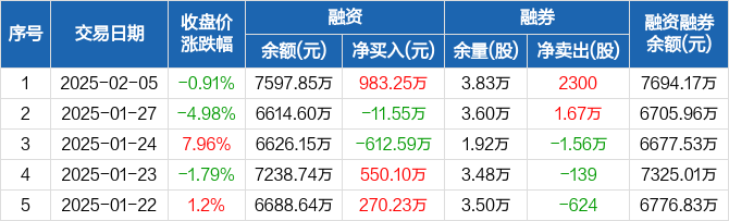 华曙高科:融资净买入983.25万元,融资余额7597.85万元(02-05)