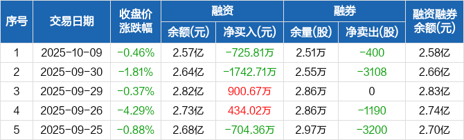 华曙高科:融资净偿还725.81万元,融资余额2.57亿元(10-09)