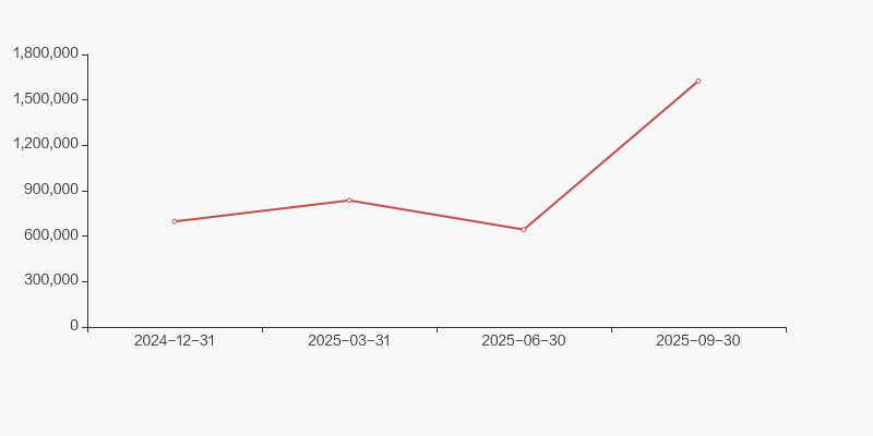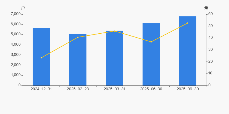 自2025年2月28日以来,公司股东户数连续3期上涨,截至目前增幅为34.04%。2025年2月28日至2025年9月30日区间股价上涨29.63%。