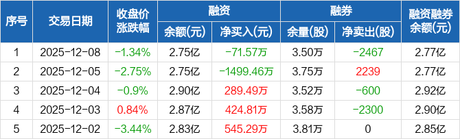 华曙高科:融资净偿还71.57万元,融资余额2.75亿元(12-08)