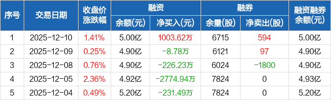 振华风光:融资净买入1003.62万元,融资余额5亿元(12-10)