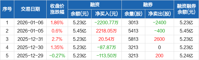 振华风光:融资净偿还2200.77万元,融资余额5.23亿元(01-06)