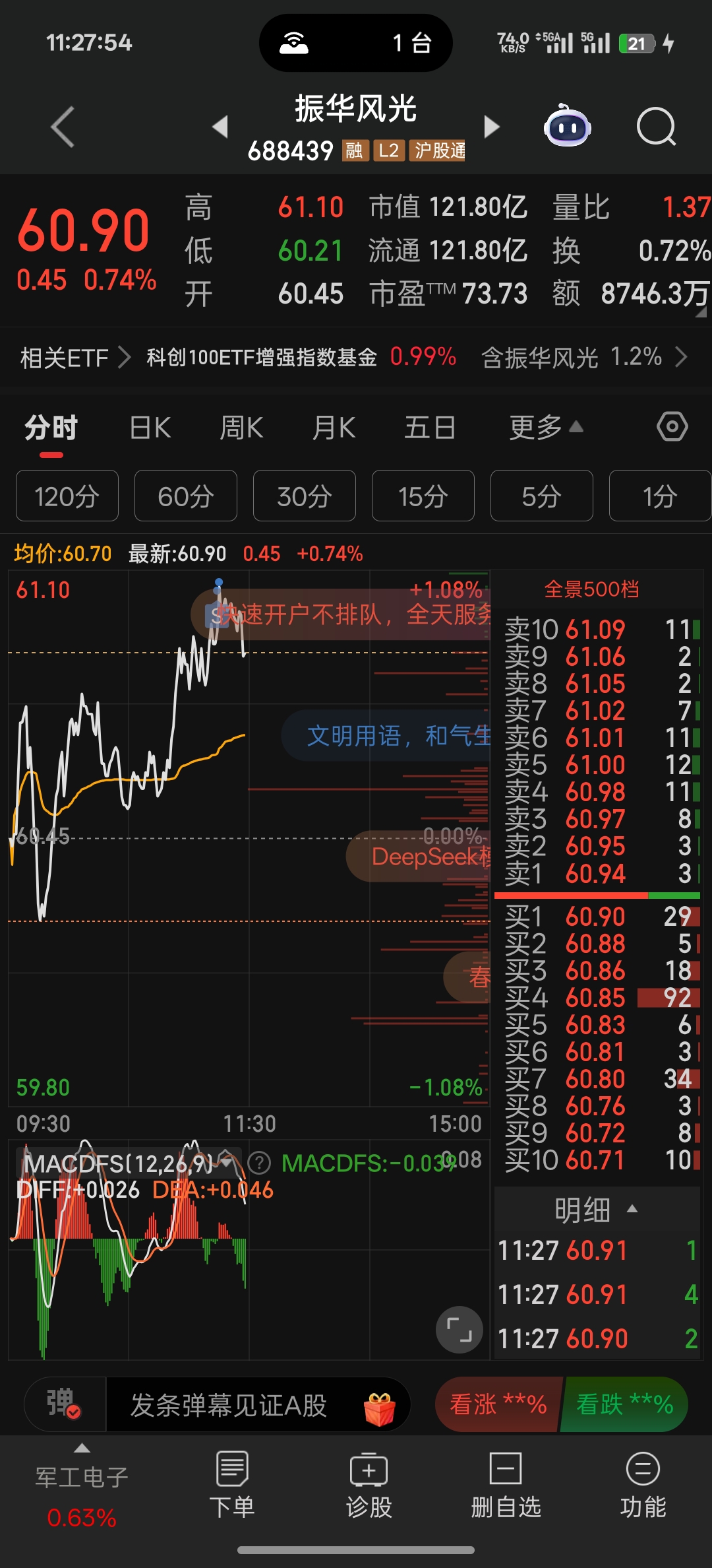 $振华风光(SH688439)$ 浪费行情的死股,直接清仓了,啥时突破61.6或者跌破59,再重仓接回来