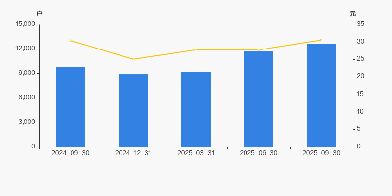 截至2025年9月30日,公司最新总股本为3.67亿股,其中流通股本为1.17亿股。户均持有流通股数量由上期的9946股下降至9231股,户均流通市值28.2万元。