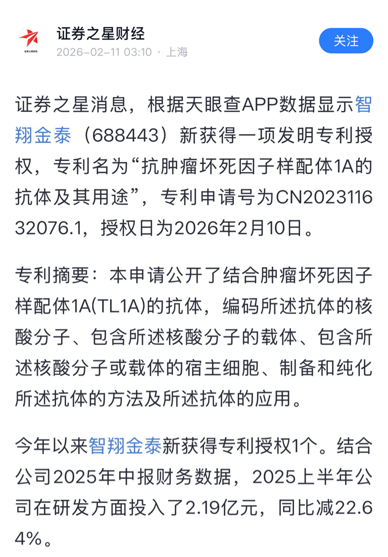 $智翔金泰-U(SH688443)$ 有没有医学专业人士,这个专利含金量怎么样,有点经济价值还是就是个没用的杂毛