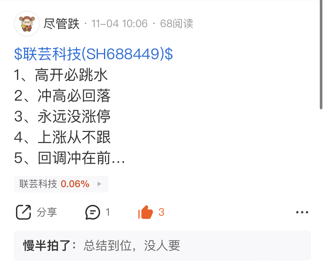 $联芸科技(SH688449)$ 新进来的朋友,看看我这个口诀再决定买不买,从没失效过
