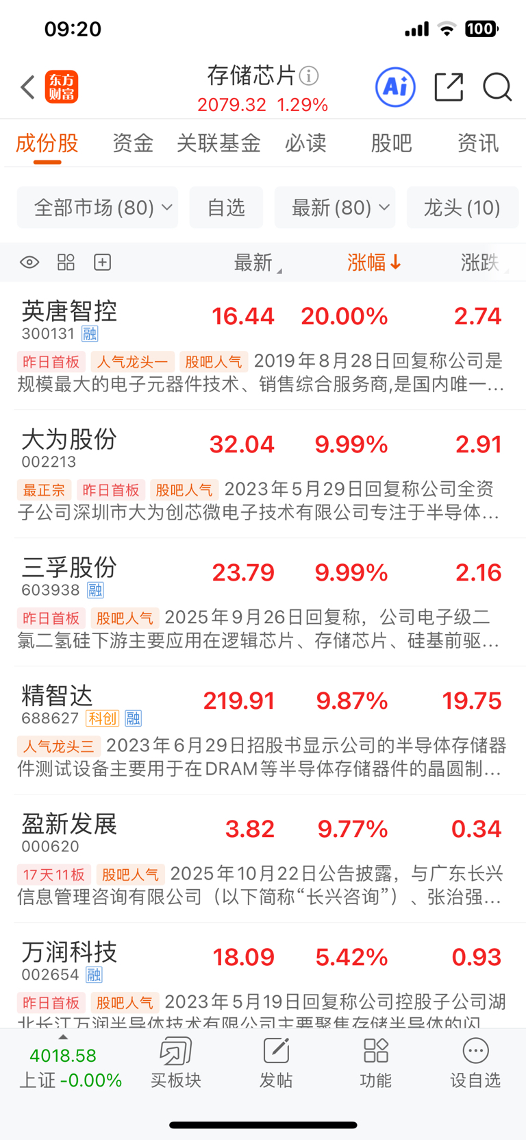 每日一提醒,前期香、德、江、百破新高没有它的份,现在高低切,其他存储补涨,它依旧