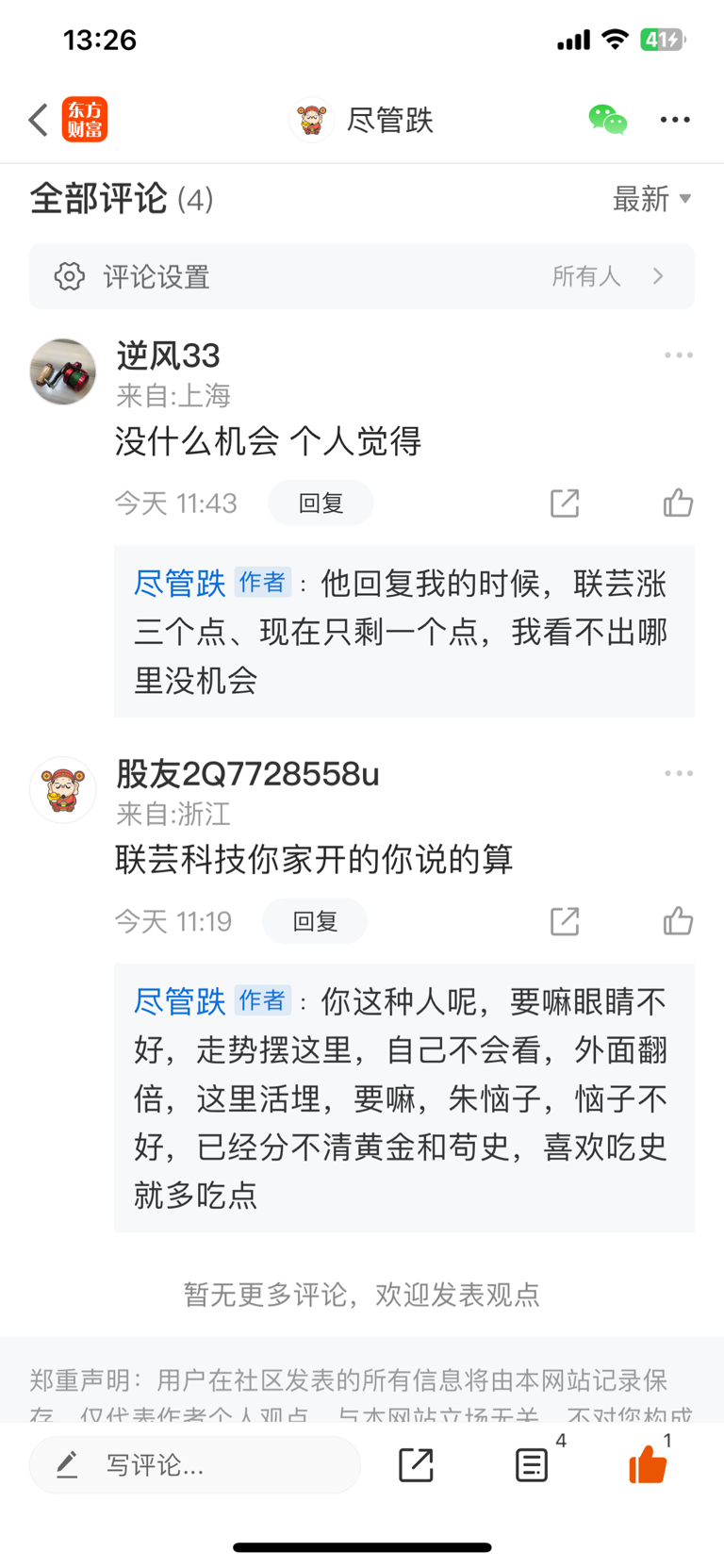 温馨提示: 1.根据《证券法》规定,禁止编造、传播虚假信息或者误导性信息,扰乱证券市场;2.用户在本社区发表的所有资料、言论等仅代表个人观点,与本网站立场无关,不对您构成任何投资建议。用户应基于自己的独立判断,自行决定证券投资并承担相应风险。《东方财富社区管理规定》
