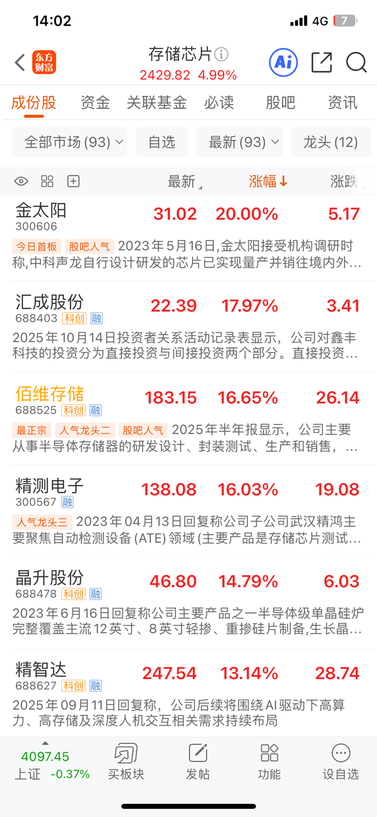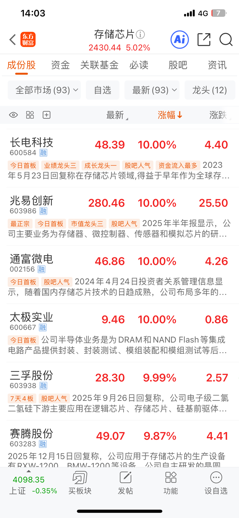 整个板块全是涨停的,联芸连存储前三十名都进不去,还一帮猪在这里吹最正宗的存储,这