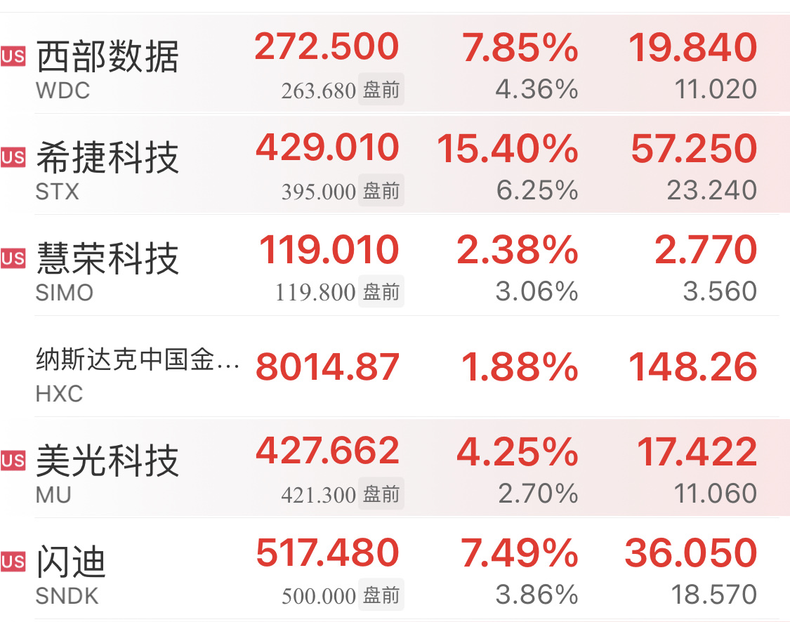 $联芸科技(SH688449)$ 每天喷归喷,熟悉我的老粉都知道,我最喜欢的就是分享客观数据,看看美股存储板块,不管是日常涨幅、翻倍程度、还是盘前的涨幅活跃度,慧荣科技都是全面落后其他公司