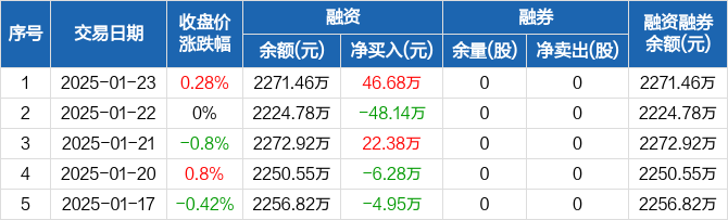光格科技:融资净买入46.68万元,融资余额2271.46万元(01-23)