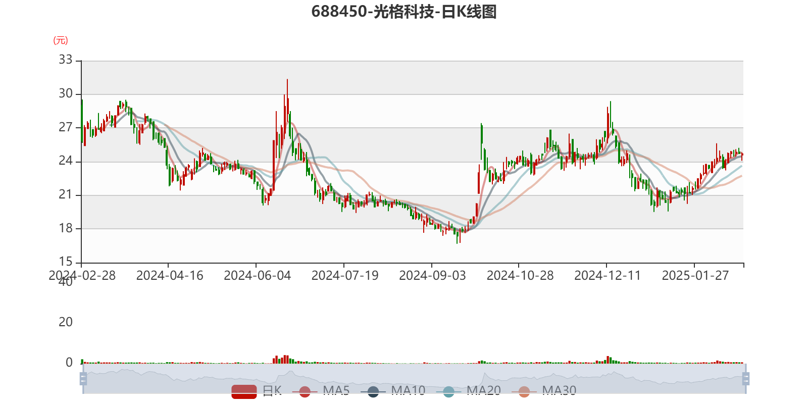 中证智能财讯光格科技(688450)2月27日晚间披露2024年业绩快报,公司实现营业收入1.8亿元,同比下降40.78%;归母净利润亏损6851.13万元,上年同期盈利4695.19万元;扣非净利润亏损7324.87万元,上年同期盈利4281.23万元;基本每股收益-1.04元,加权平均净资产收益率为-6.45%。以最新收盘价计算,市净率(LF)约1.55倍,市销率(TTM)约7.47倍。