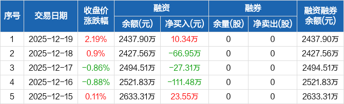 光格科技:融资净买入10.34万元,融资余额2437.9万元(12-19)