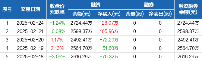 科捷智能:融资净买入126.07万元,融资余额2724.44万元(02-24)