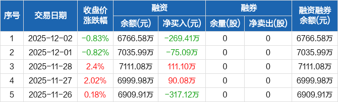 科捷智能:融资净偿还269.41万元,融资余额6766.58万元(12-02)