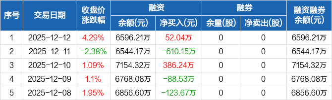 科捷智能:融资净买入52.04万元,融资余额6596.21万元(12-12)