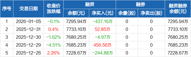 科捷智能:融资净偿还437.16万元,融资余额7295.94万元(01-05)