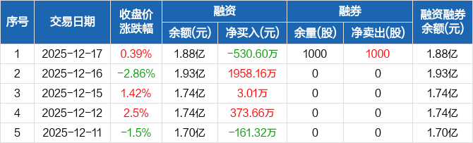 有研粉材:融资净偿还530.6万元,融资余额1.88亿元(12-17)