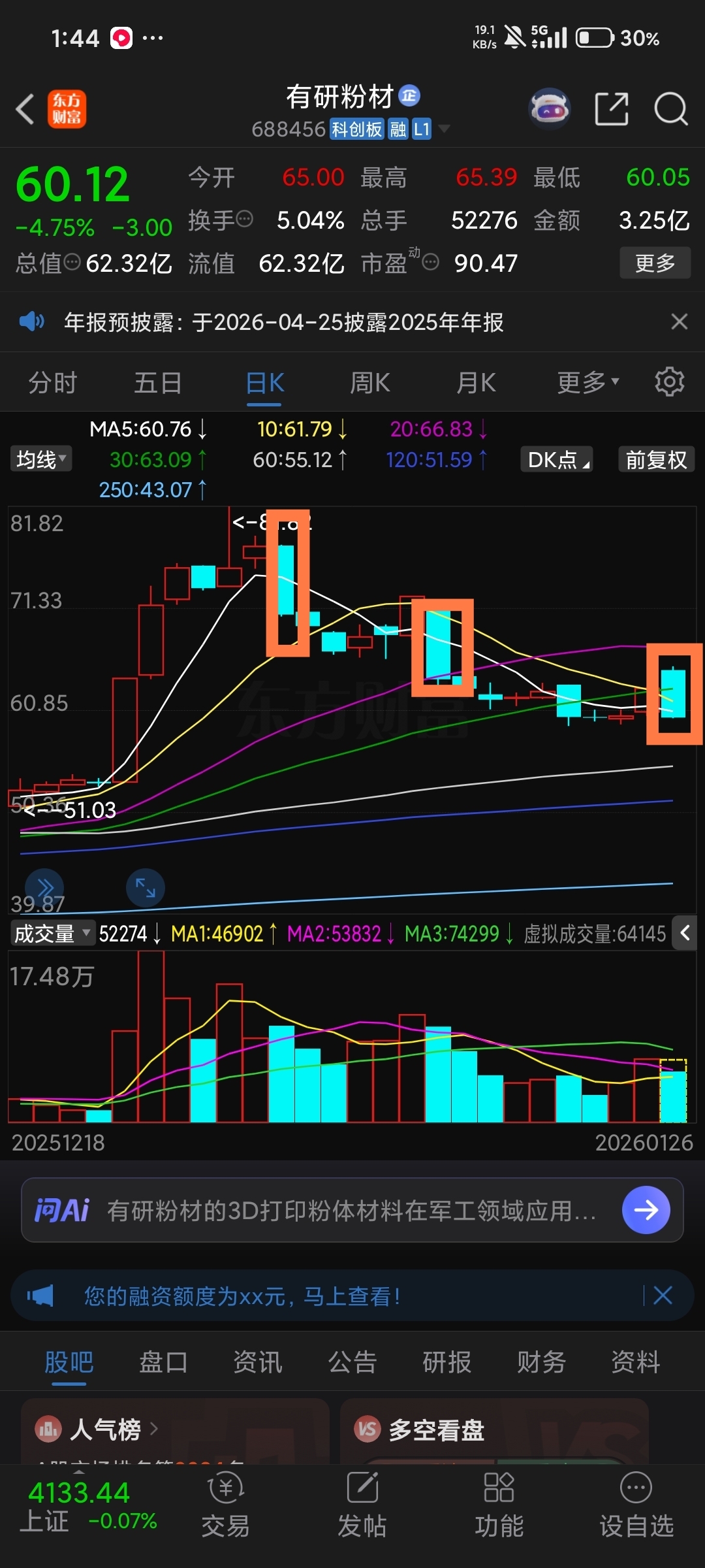 $有研粉材(SH688456)$ 哪个航天票有这种杀跌