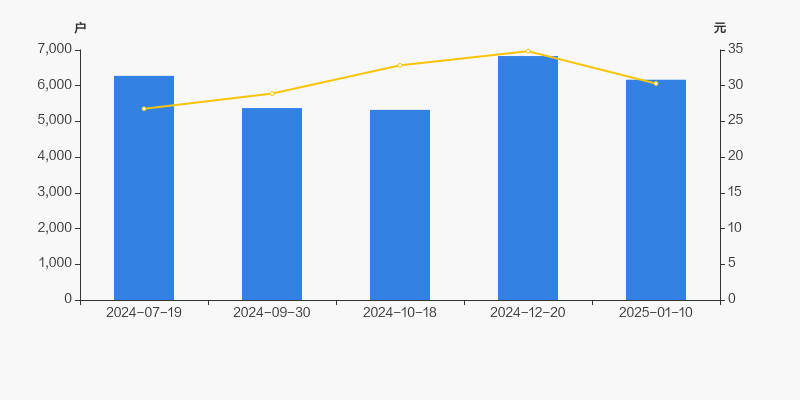 截至2025年1月10日,公司最新总股本为1.12亿股,其中流通股本为8394.85万股。户均持有流通股数量由上期的1.23万股上升至1.36万股,户均流通市值41.24万元。
