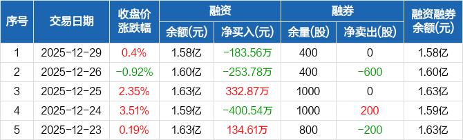 美芯晟:融资净偿还183.56万元,融资余额1.58亿元(12-29)