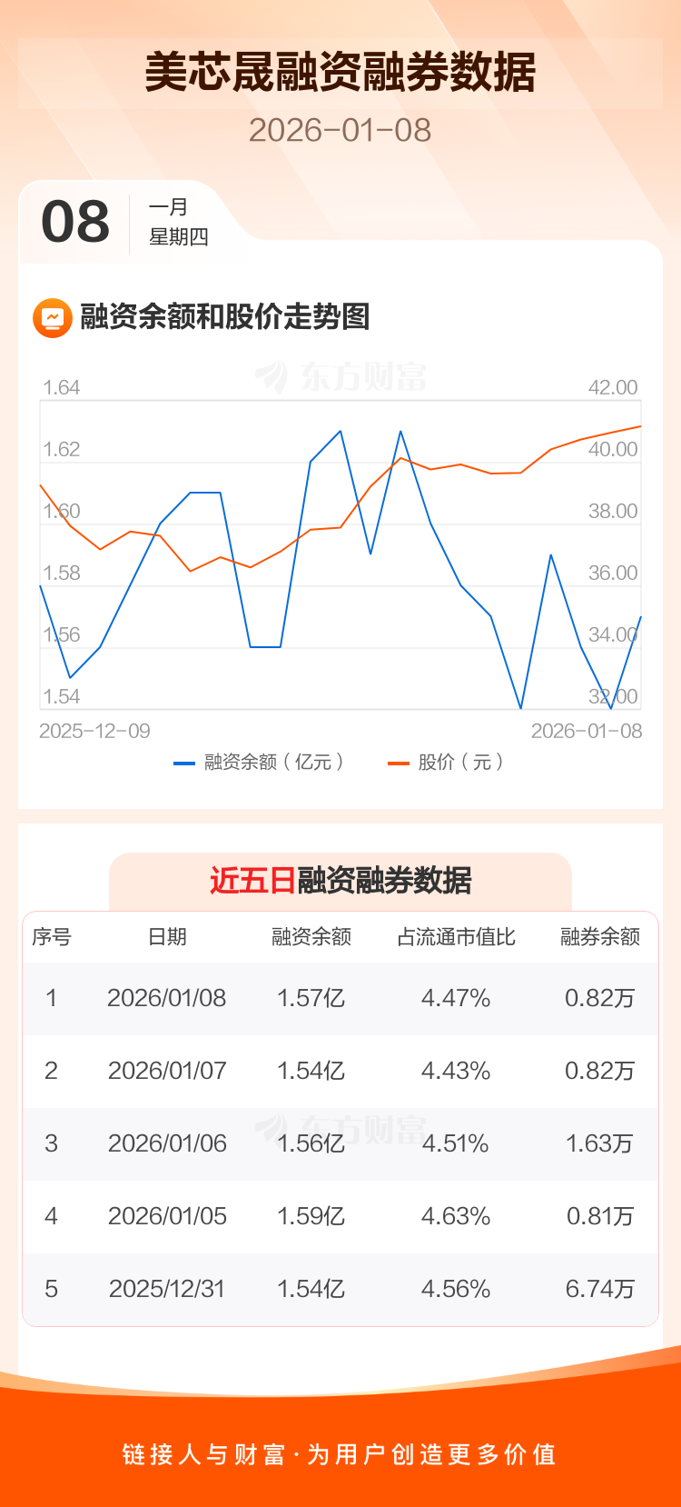 交易所最新数据显示,美芯晟于2026年1月8日获融资买入1226.63万元,融资偿还989.80万元,当日融资净买入236.83万元。目前,该股融资余额1.57亿,占流通市值比例为4.47%。