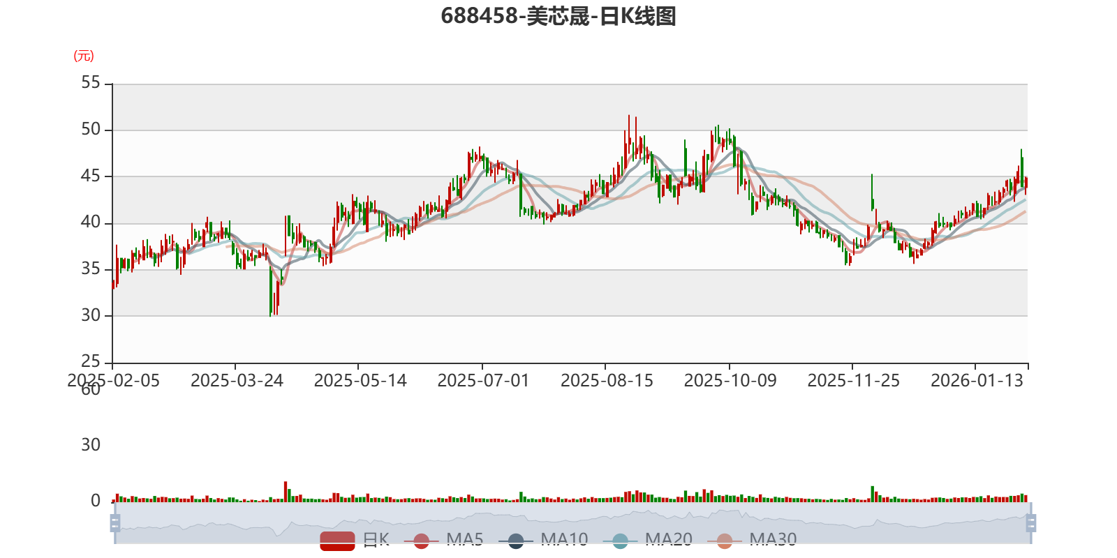 中证智能财讯美芯晟(688458)1月30日晚间披露2025年度业绩预告,预计2025年实现营业收入5.4亿元至6亿元,同比增长33.33%-48.15%;归母净利润亏损1300万元至1600万元,上年同期亏损6656.71万元;扣非净利润亏损3200万元至3800万元,上年同期亏损9308.2万元。以最新收盘价计算,市净率(LF)约2.7倍,市销率(TTM)约8.77倍。