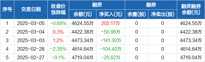 哈铁科技:融资净买入202.17万元,融资余额4624.55万元(03-05)