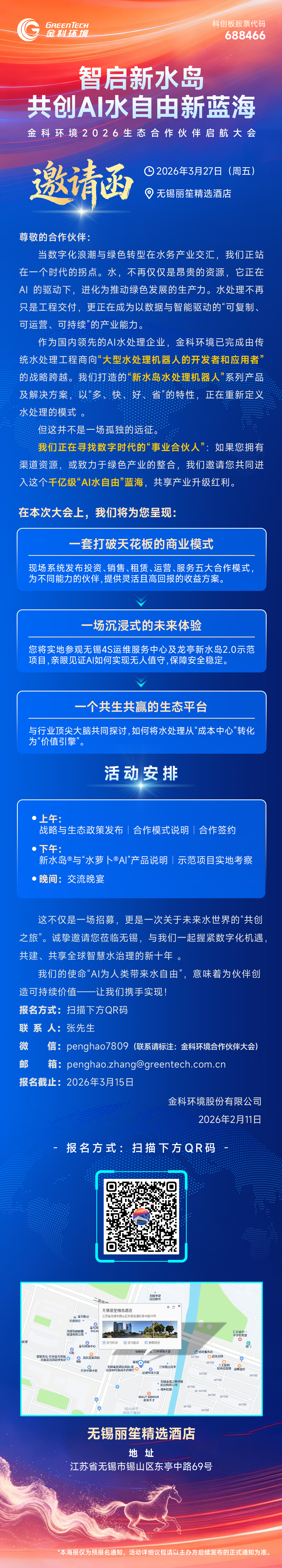 智启新水岛·共创AI水自由新蓝海——【金科环境2026生态合作伙伴大会】将于3月27日在无锡重磅启航~