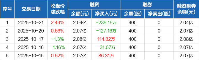 科美诊断:融资净偿还239.19万元,融资余额2.04亿元(10-21)